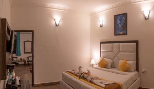 La Perle River Resort sits near the banks of the Kosi River, spread across 7.5 acres of land. It’s conveniently located just 6 kilometers from the village of Ramnagar. The resort offers different types of rooms named Cotton Tree Superior, Leopard Lair Cottage, Tiger Den Cottage, and Elephant Park rooms. These rooms have luxurious amenities like AC, TV, Tea/Coffee maker, mini bar, electronic safe, and dressing table with many more.